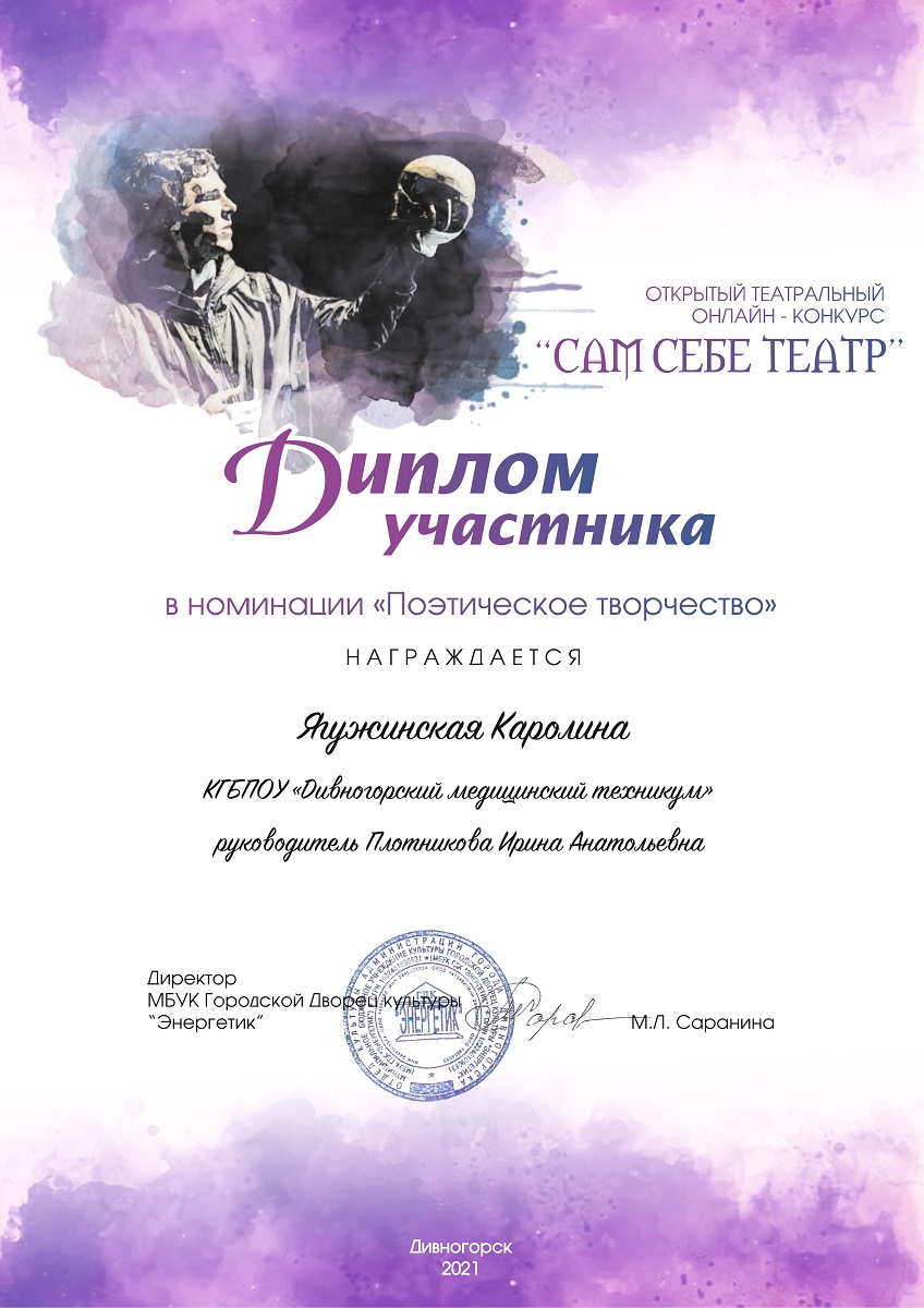 В результате наши студенты были отмечены в номинации «Поэтическое творчество»: