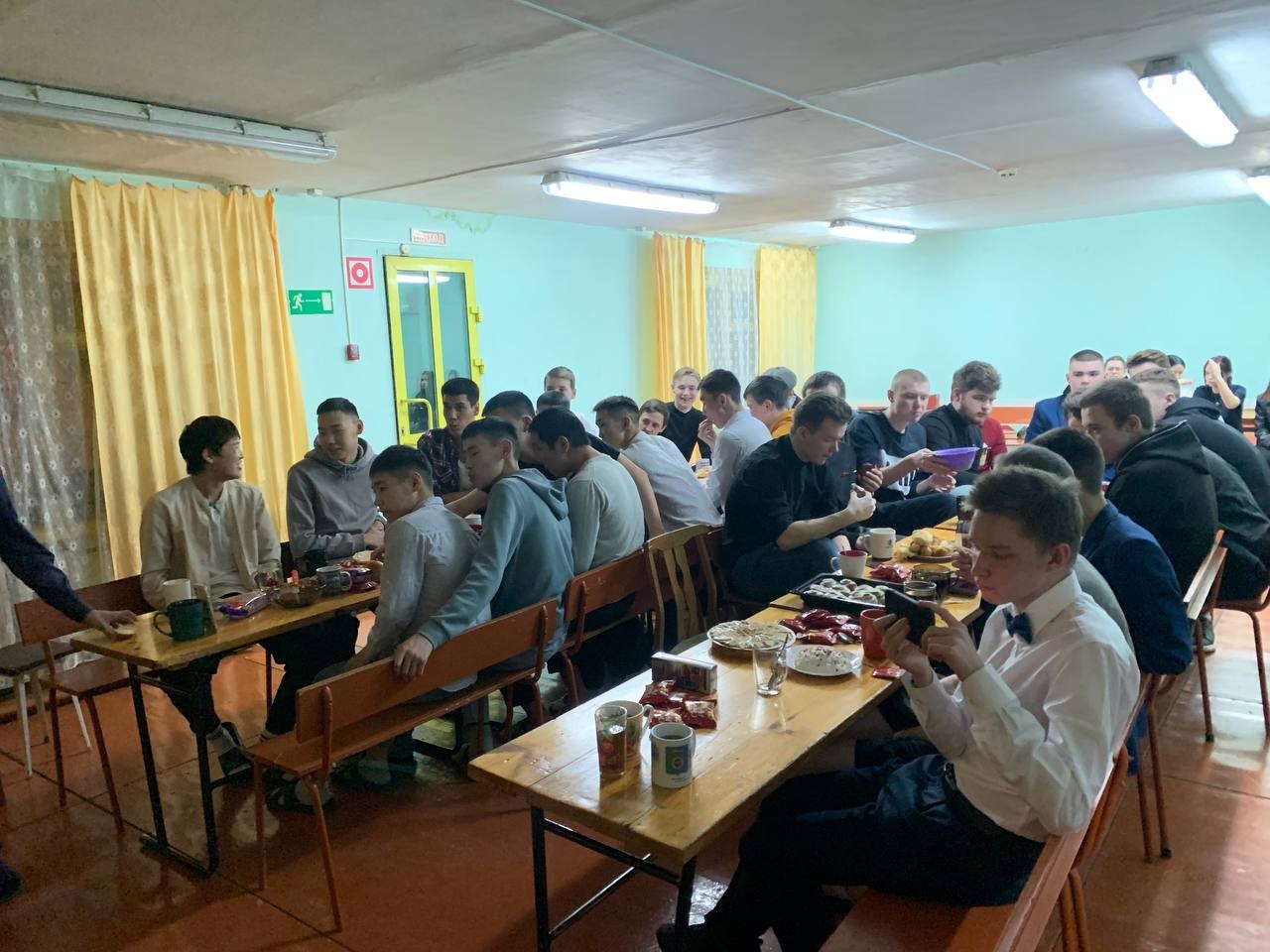 21 февраля в актовом зале девочки накрыли большой стол и пригласили парней не чаепитие. В этой дружеской, семейной обстановке ребята и пообщались между собой, и посмотрели интересный концерт, и с удовольствием поучаствовали в веселых конкурсах.