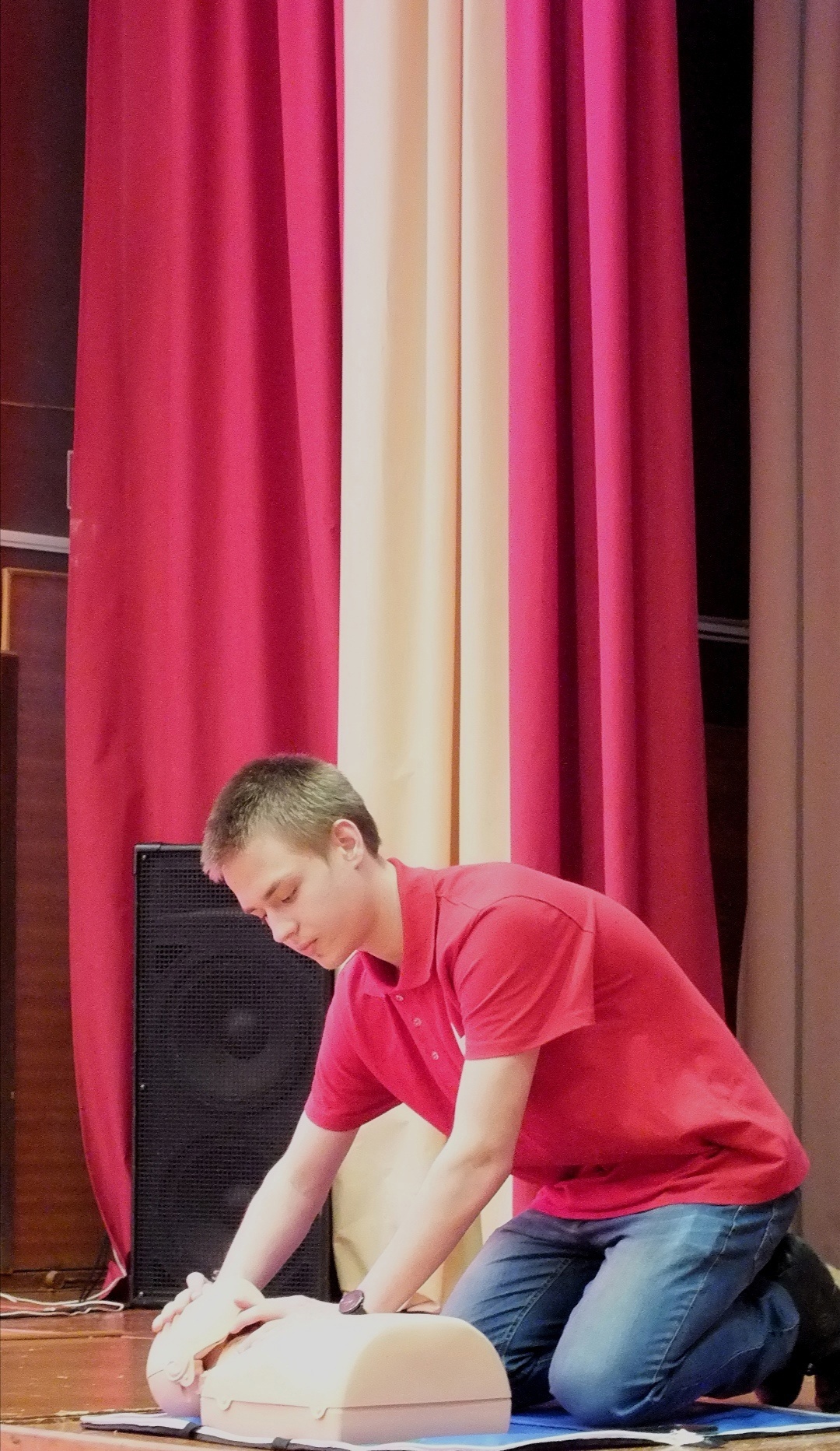 Волонтёры – медики (Илья Долгов и Сергей Тайков) показали приёмы оказания первой помощи, чем вызвали восхищение гостей.
