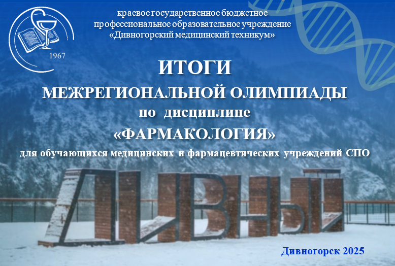 22 октября 2025 года в соответствии с планом Сибирской межрегиональной ассоциации работников системы среднего профессионального медицинского образования на базе КГБПОУ «Дивногорский медицинский техникум» проводилась студенческая онлайн-олимпиада по дисциплине «Фармакология» среди студентов специальности 31.02.01 Лечебное дело, 34.02.01 Сестринское дело средних медицинских и фармацевтических профессиональных образовательных учреждений Сибирского федерального округа